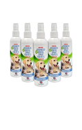A: The spray comes in 1–8 oz bottles to suit different pet sizes and usage needs.